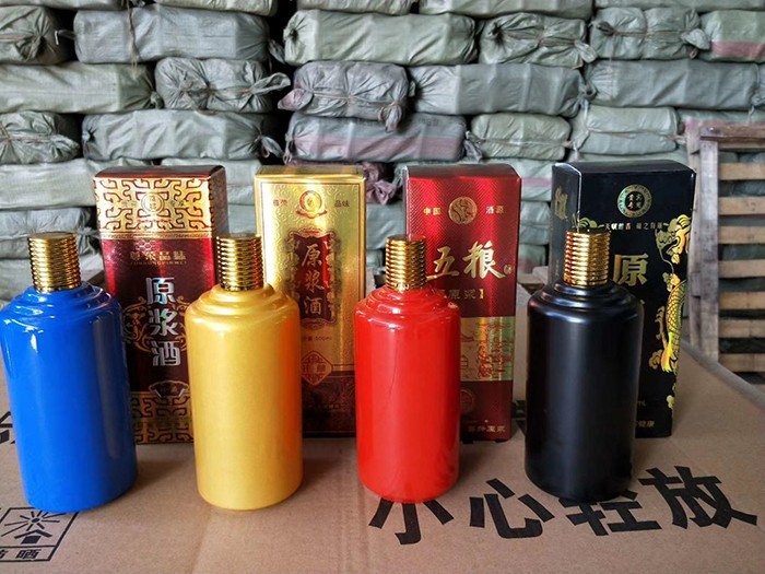 蒙砂酒瓶是在制品玻璃上,粘附一定大小面積的玻璃色釉粉,玻璃瓶廠經(jīng)過(guò)580~600℃的高溫烘烤,使玻璃色釉涂層凝結(jié)在玻璃外表,并顯現(xiàn)出具有與玻璃主體不同顏色的一種裝飾辦法。粘附玻璃色釉粉,可用排筆涂刷,亦可用膠輥滾涂。經(jīng)過(guò)絲印加工,能夠得到蒙砂面的樓空?qǐng)D案。 其辦法是:在玻璃制品外表上,絲印一層由阻熔劑構(gòu)成的圖案紋樣。